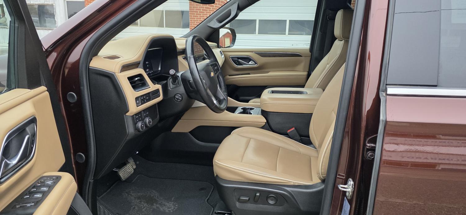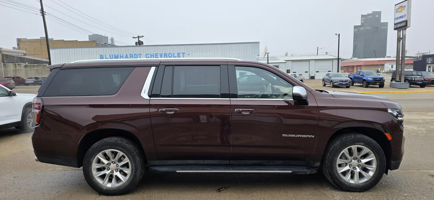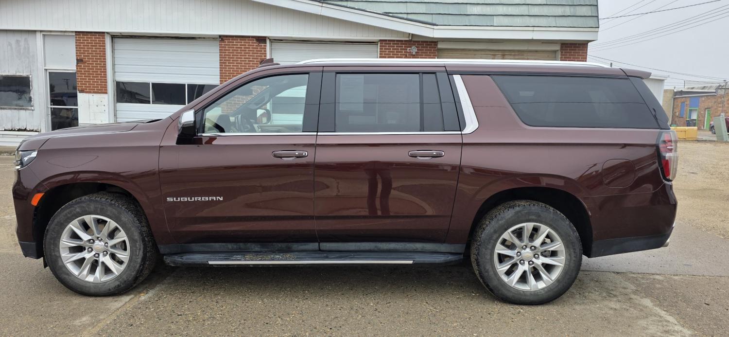 USED 2023 CHEVY SUBURBAN, PREMIER, 4WD, ONE OWNER, LOCAL TRADE-IN, QUAD BUCKET SEATING, LEATHER INTERIOR, HEATED AND VENTILATED FRONT SEATS, HEATED STEERING WHEEL, HEATED 2ND ROW SEATS, POWER LIFTGATE, NAVIGATION, DUAL CLIMATE ZONE CONTROL, BACKUP CAMERA WITH GUIDANCE LINES AND MORE!