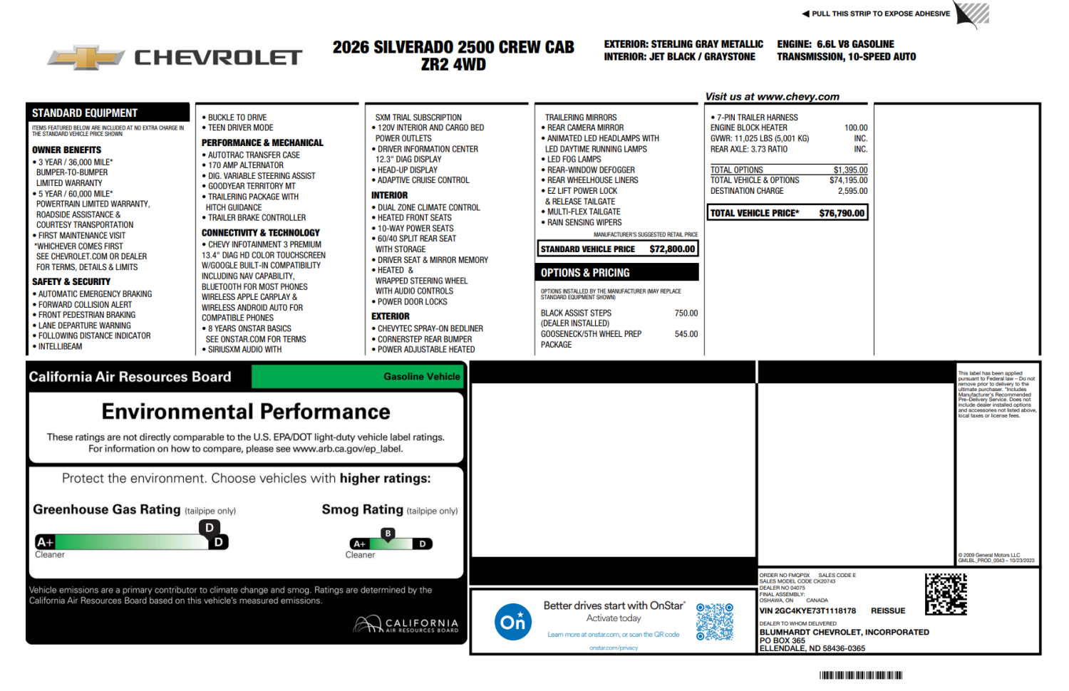 Listing: 2026 CHEVROLET SILVERADO 2500 ZR2