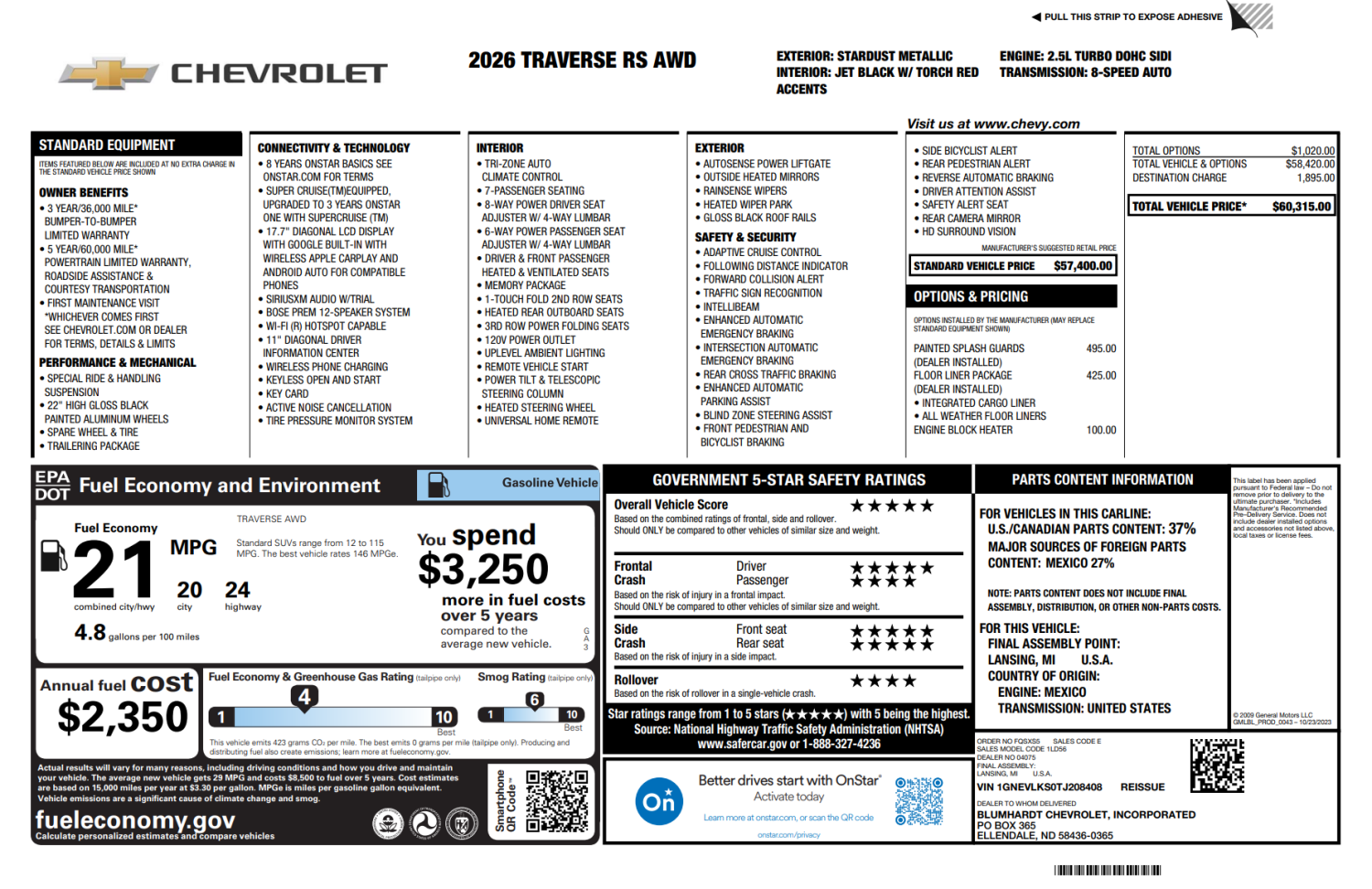 Listing: 2026 CHEVROLET TRAVERSE RS